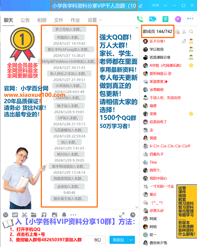 【全国最大小学资源QQ群也属于我们!】人山人海!